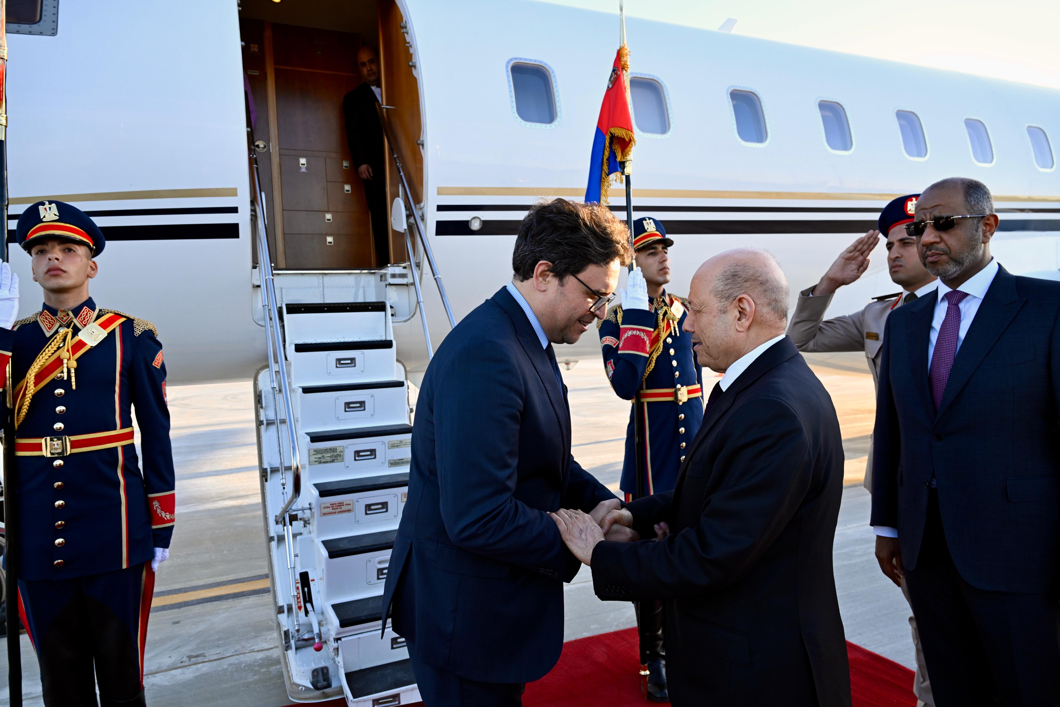 His Excellency Dr. Rashad Mohammed Al-Alimi, President of the Presidential Leadership Council, concluded today Friday, a visit to the Egyptian capital, Cairo. The visit came at the invitation of His Excellency President Abdel Fattah El-Sisi to attend the inauguration of the Grand Egyptian Museum.