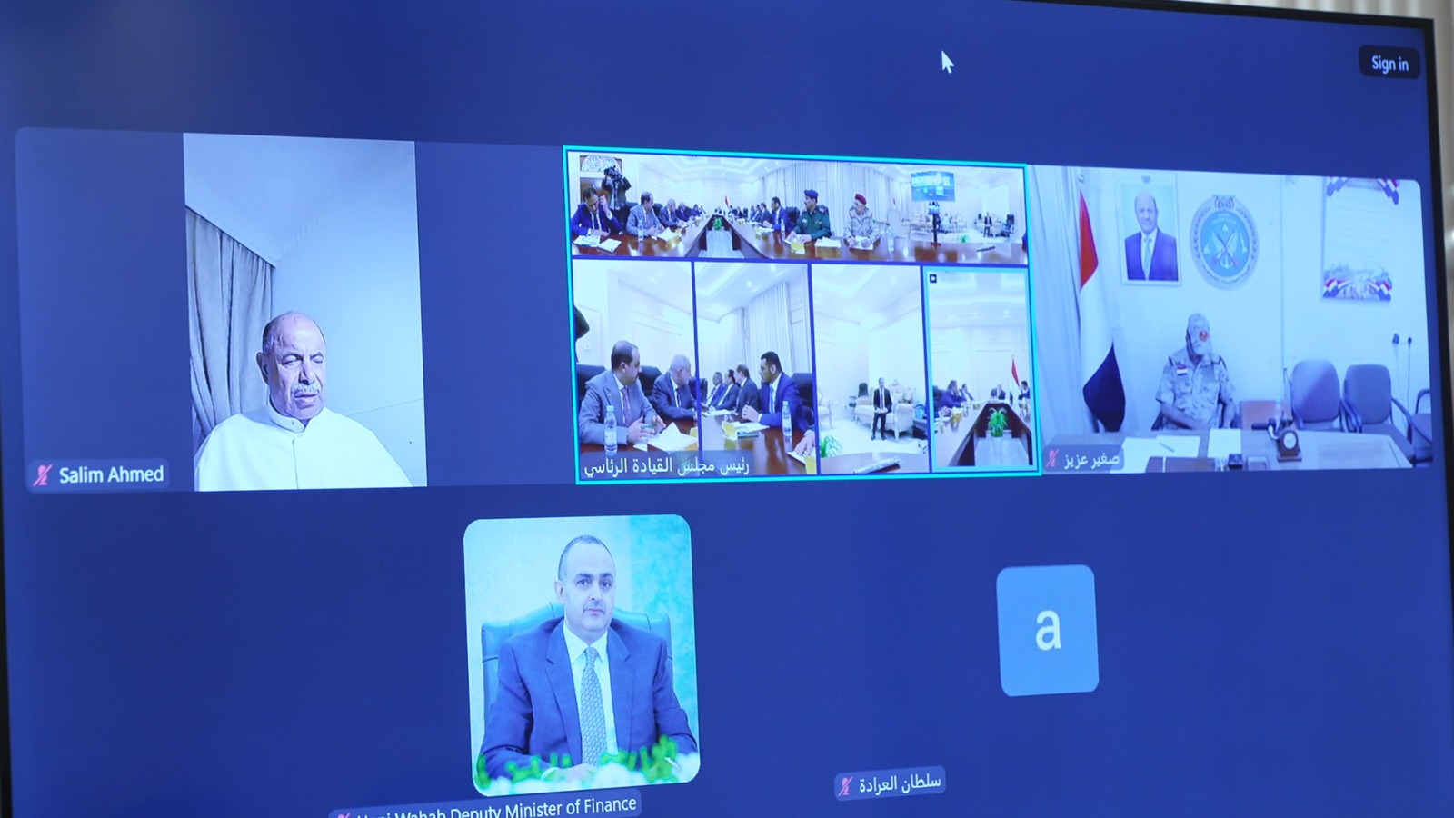 His Excellency Dr. Rashad Mohammed Al-Alimi, President of the Presidential Leadership Council, the Supreme Commander of the Armed Forces, chaired an emergency meeting of the National Defense Council today Friday, attended by members of the Presidential Leadership Council: Sheikh Sultan Al-Aradah, Dr. Abdullah Al-Alimi, and Sheikh Othman Mujalli.