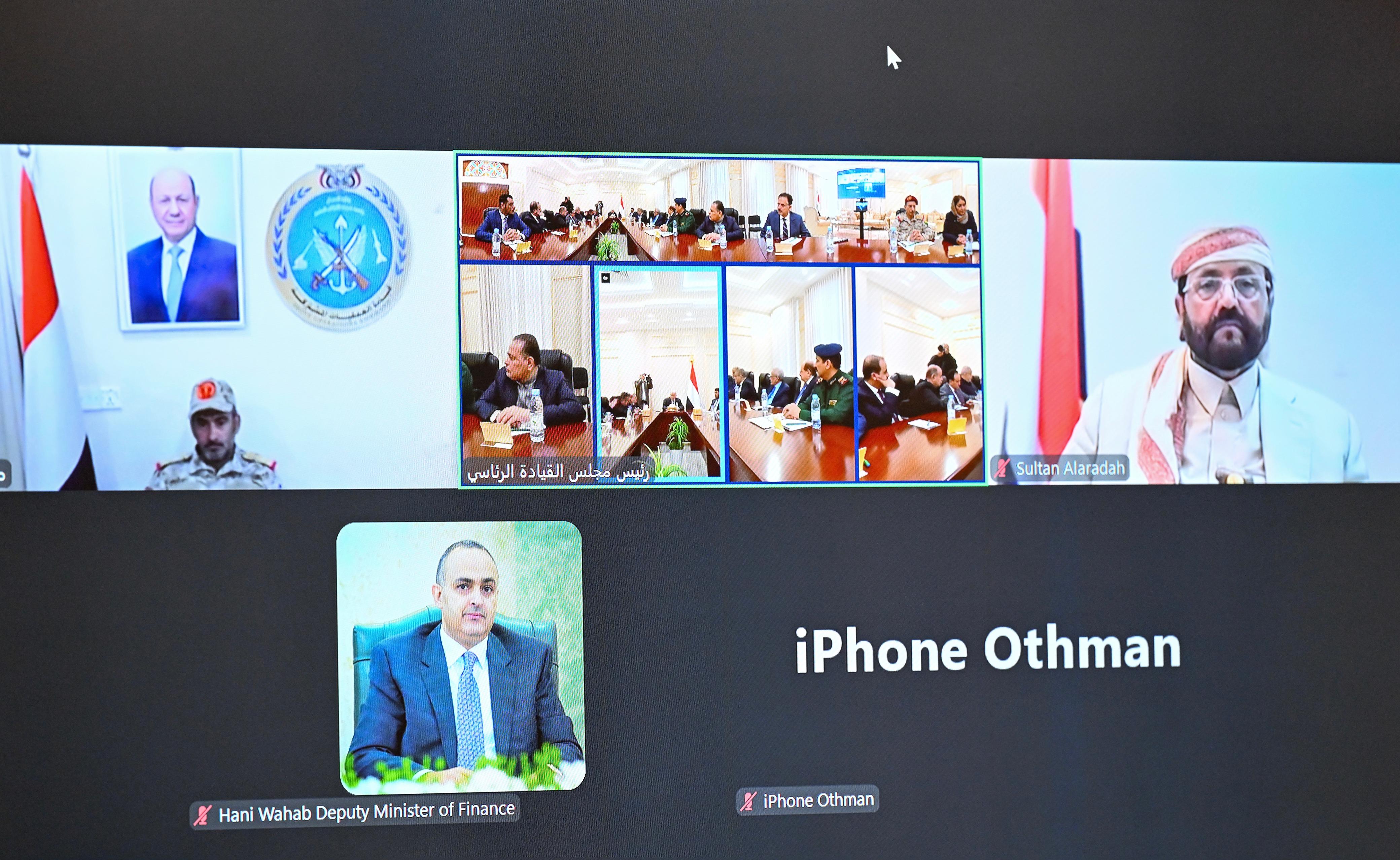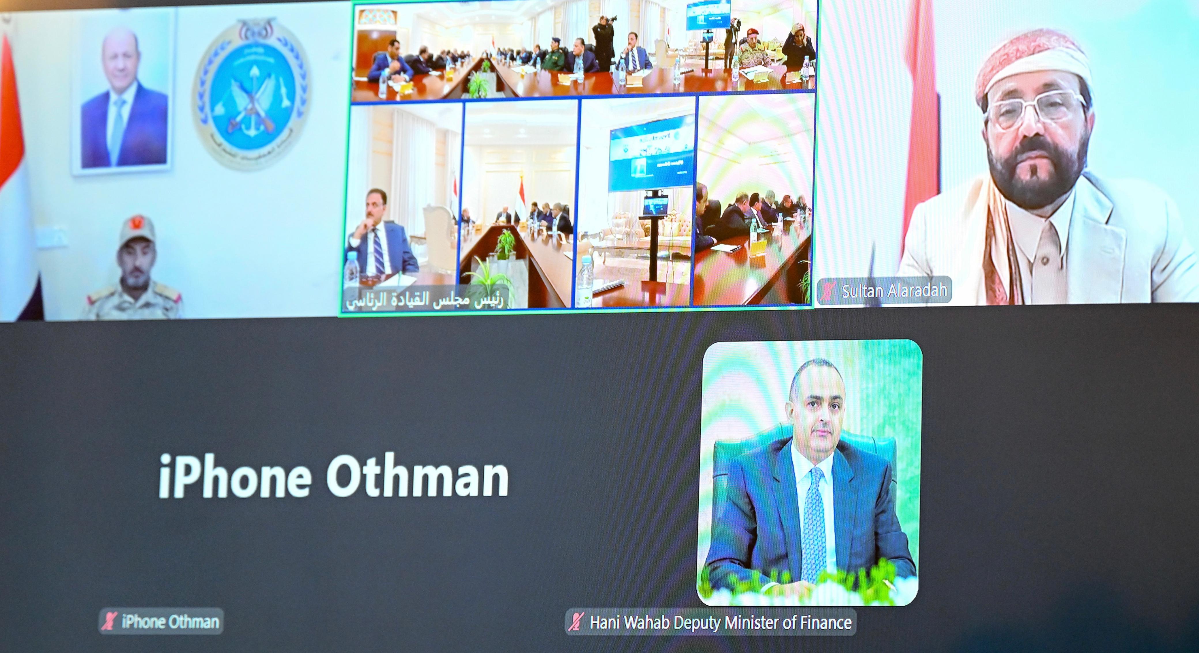 His Excellency President Dr. Rashad Mohammed Al-Alimi, President of the Presidential Leadership Council, the Supreme Commander of the Armed Forces, chaired today, Tuesday, a meeting of the National Defense Council, attended by Sheikh Sultan Al-Aradah, Dr. Abdullah Al-Alimi, and Sheikh Othman Mujalli, members of the Presidential Leadership Council.
