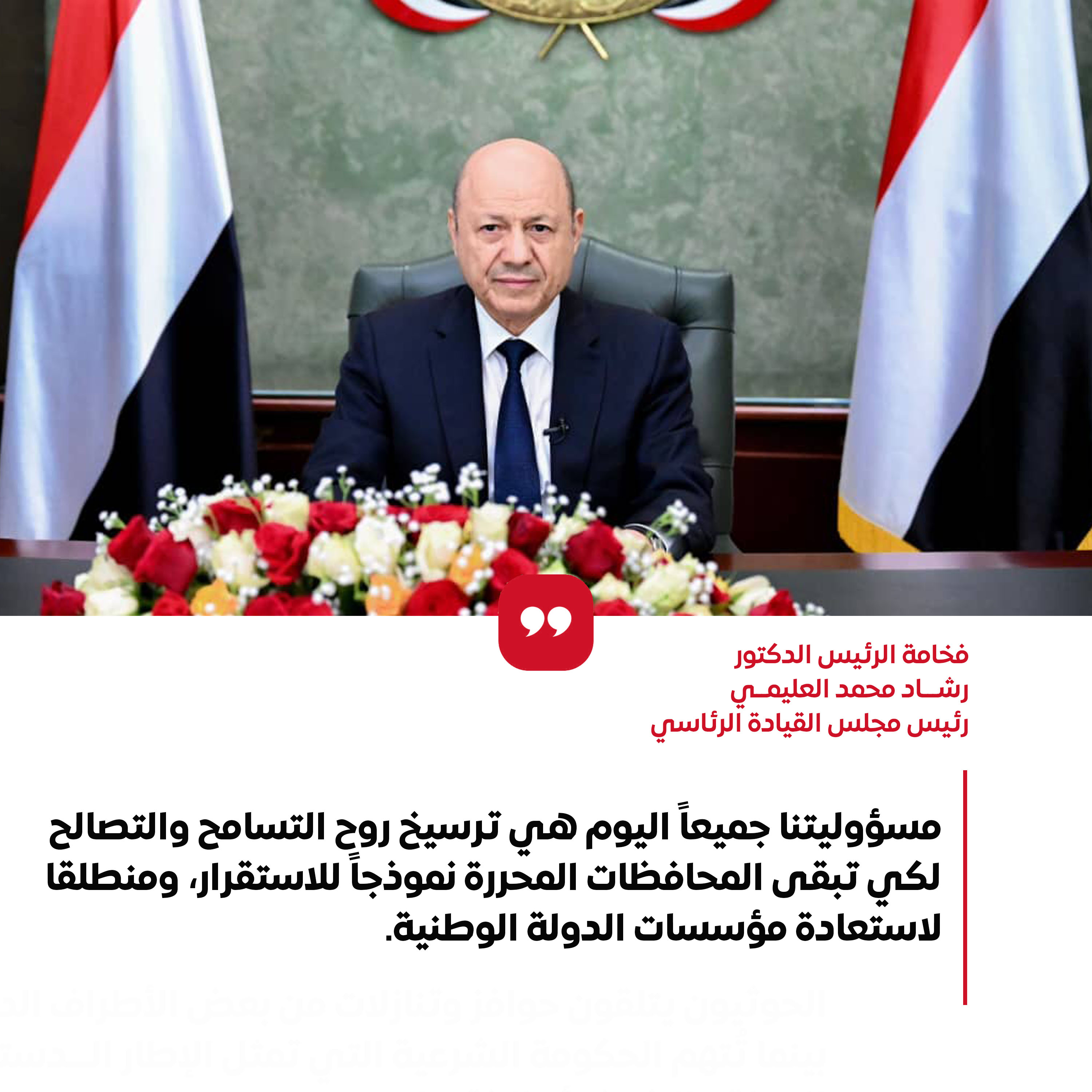 رئيس مجلس القيادة يؤكد على الدور المحوري لمحافظة الضالع في بناء مشروع المستقبل