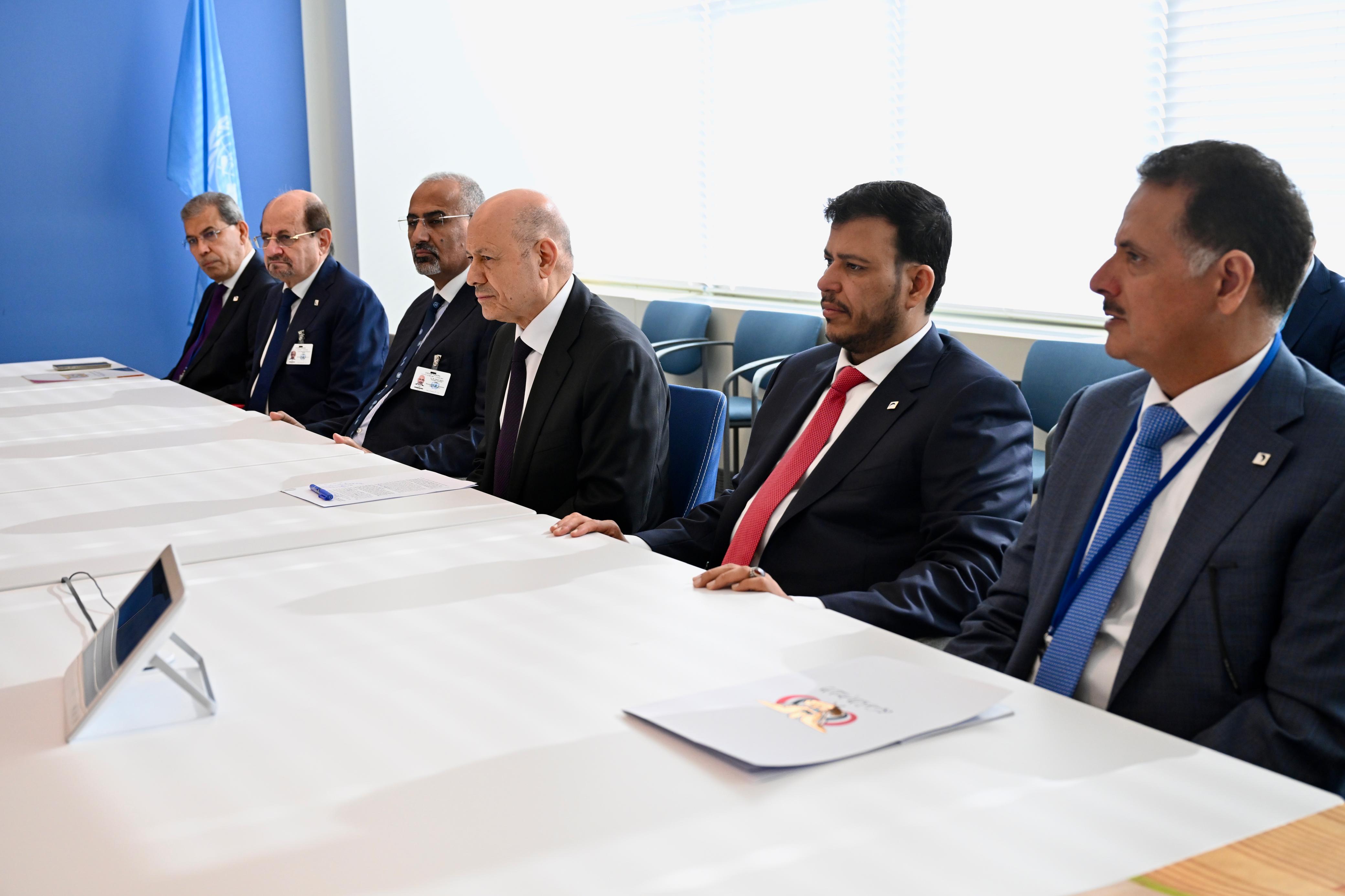 The meeting was attended by Dr. Shaya’ Mohsen Al-Zindani, Minister of Foreign Affairs and Expatriates, Ambassador Abdullah Al-Saadi, Yemen’s Permanent Representative to the United Nations, and Major General Saleh Al-Maqaleh, Director of the Office of the President of the Leadership Council.