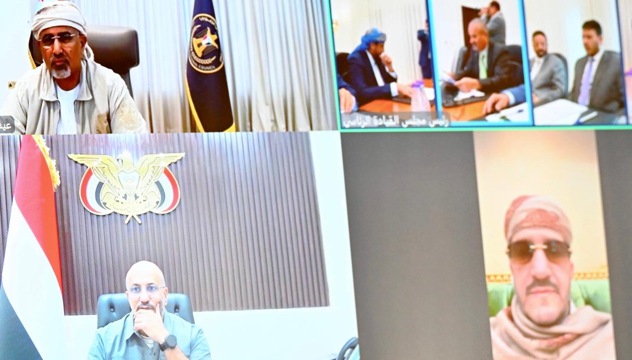 The Presidential Leadership Council held a meeting today, Wednesday, chaired by His Excellency President Dr. Rashad Mohammed Al-Alimi, President of the Council, with the participation of members: Sultan Al-Aradah, Abdulrahman Al-Mahrami, and Dr. Abdullah Al-Alimi. Members Aidarous Al-Zubaidi, Tariq Saleh, and Othman Mujalli joined via video conference, while member Faraj Al-Bahsani was absent with excuse.
