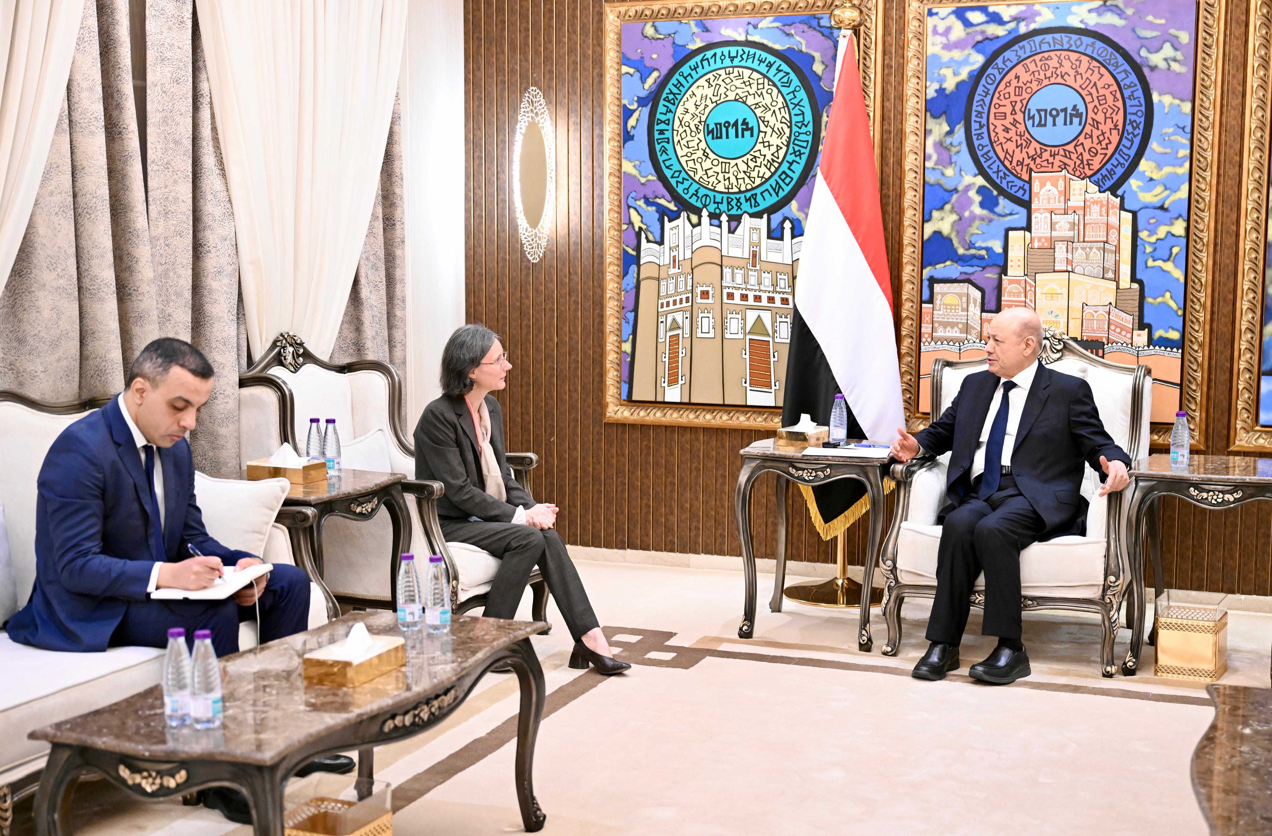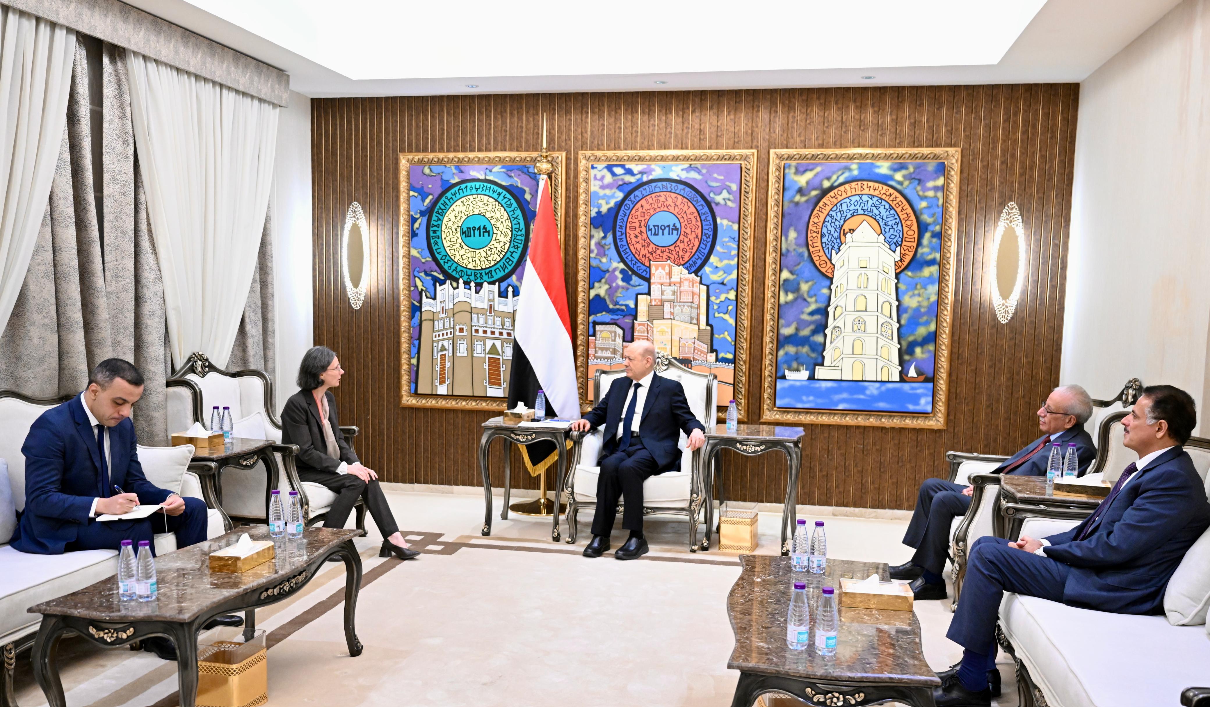 His Excellency Dr. Rashad Mohammed Al-Alimi, President of the Presidential Leadership Council, received today Wednesday, Ms. Catherine Corm-Kamoun, the Ambassador of the French Republic to Yemen. The meeting discussed recent developments in Yemen and the French support required for the country’s comprehensive reform program.
