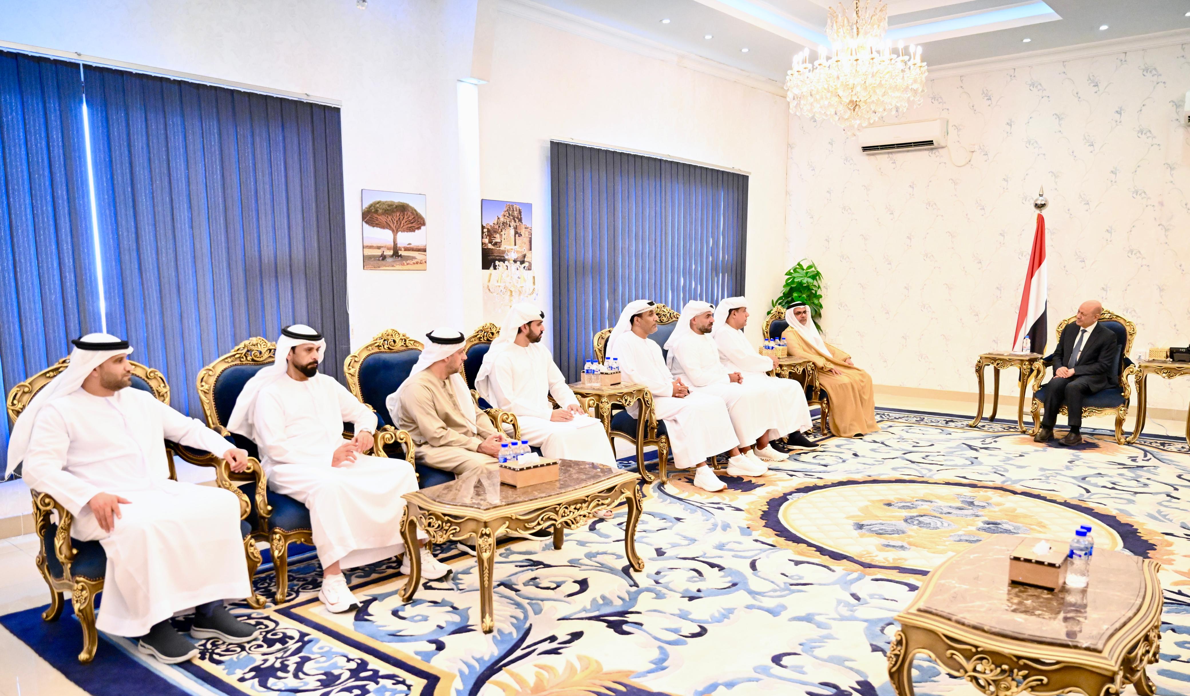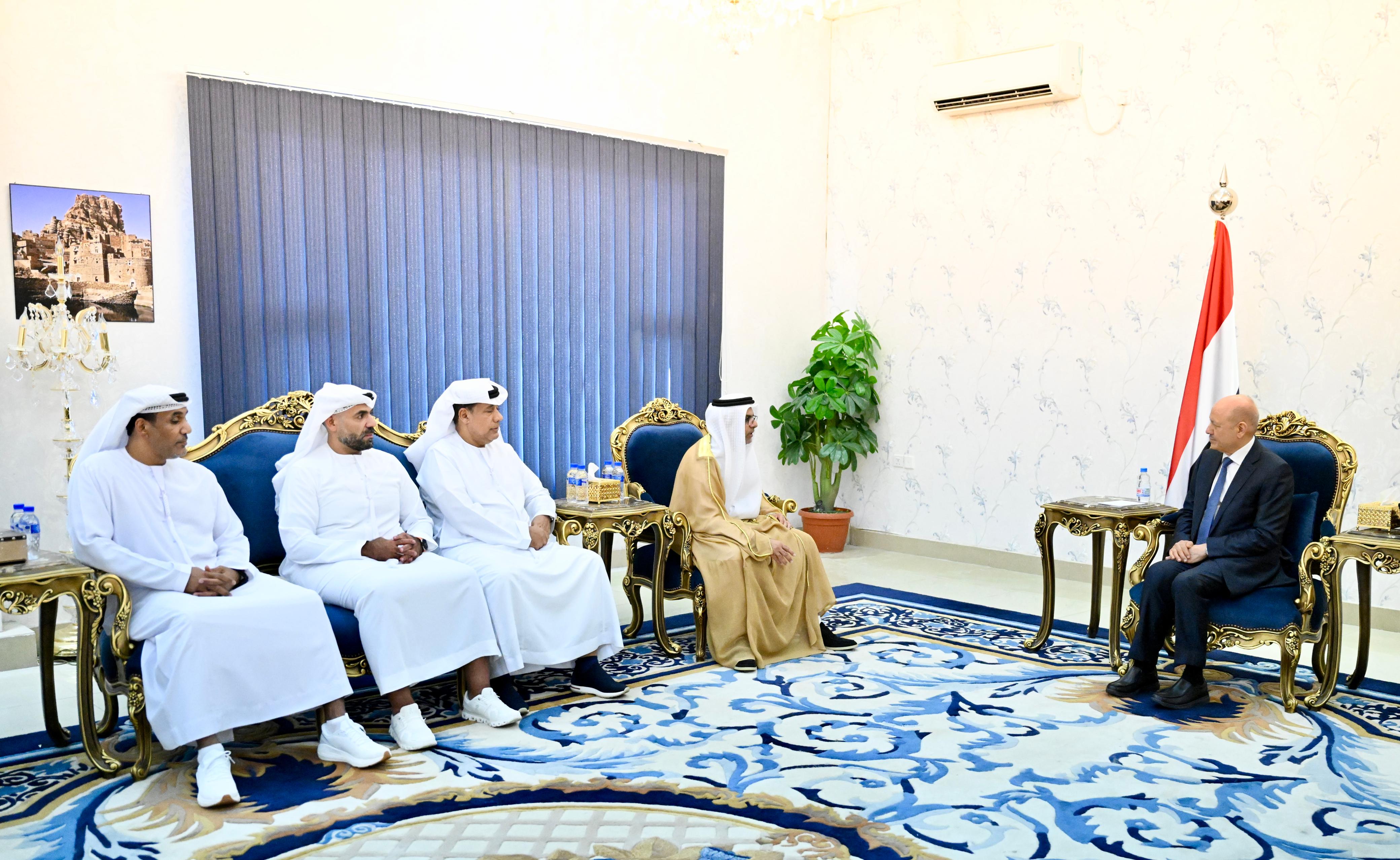 President of the presidential leadership council renewed his appreciation for the UAE’s active role in supporting the Council, the government, and the Yemeni people, including its economic, humanitarian, and development interventions across various fields.