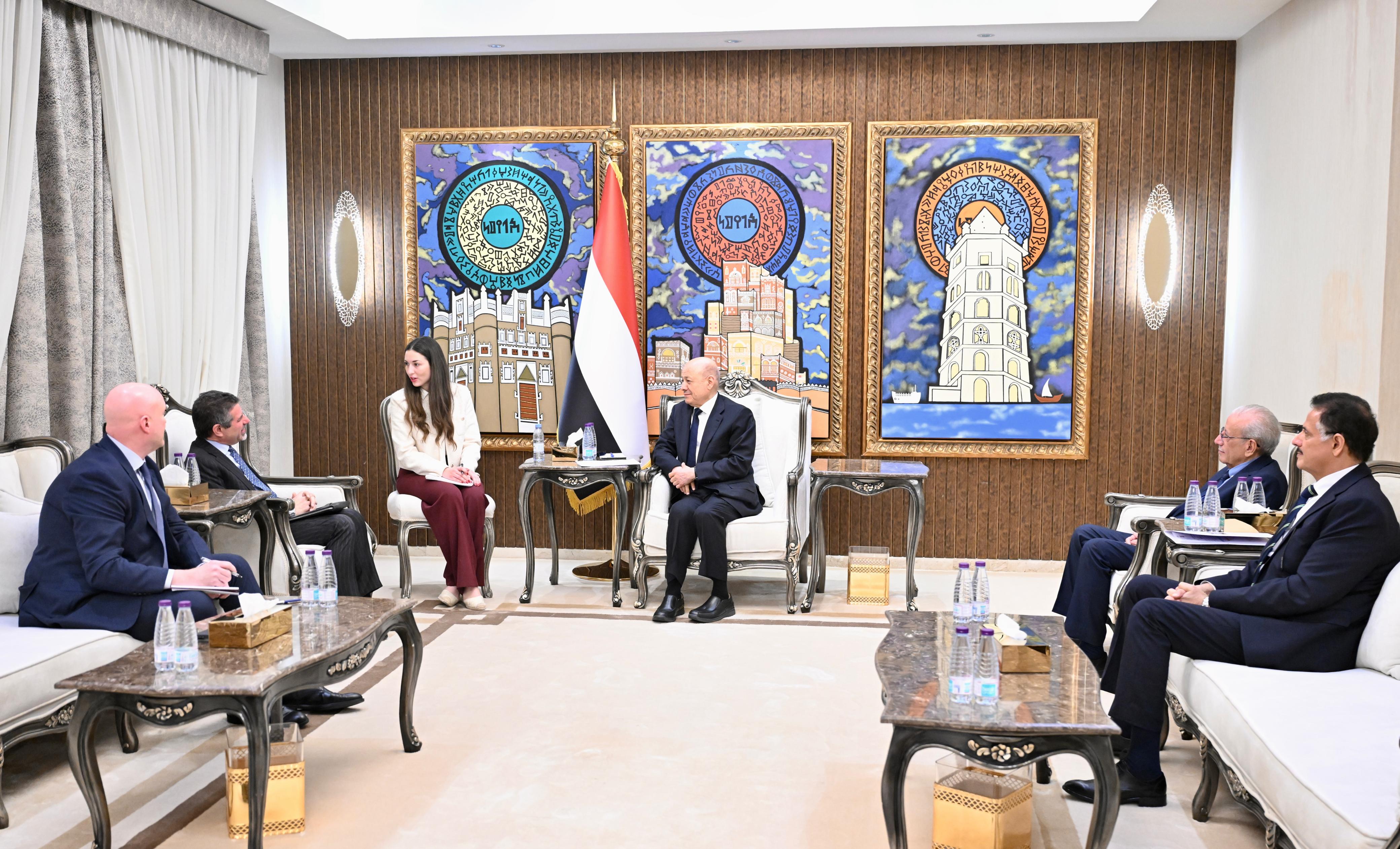 His Excellency President Dr. Rashad Mohammed Al-Alimi, President of the Presidential Leadership Council, today Wednesday, received Mr. Steven Fagin, the Ambassador of the United States of America to Yemen. The meeting reviewed the latest developments in the country and their economic and security implications, in light of recent developments in the governorates of Hadhramaut and Al-Mahrah.