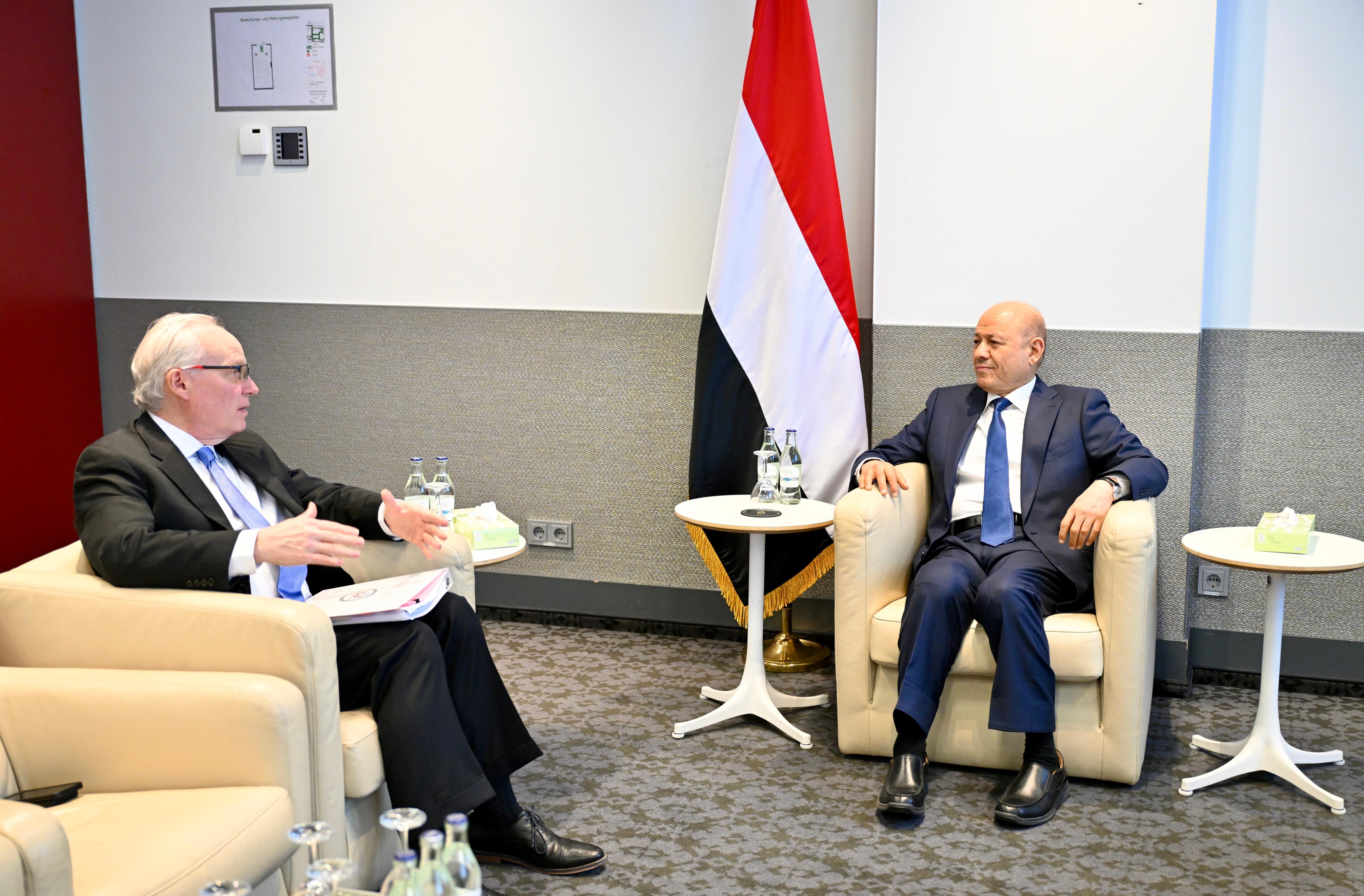 President Dr. Rashad Mohammed Al-Alimi, President of the Presidential Leadership Council, met on Saturday with Mr. Timothy Lenderking, the U.S. Deputy Assistant Secretary of State for Near Eastern Affairs, on the sidelines of the Munich Security Conference, which commenced on Friday.