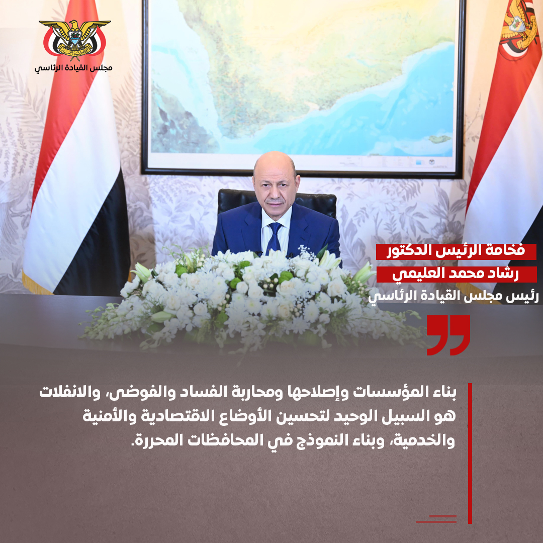 رئيس مجلس القيادة يطلع على مستجدات الأوضاع في محافظتي حضرموت والمهرة ويشيد بالجهود السعودية لخفض التصعيد