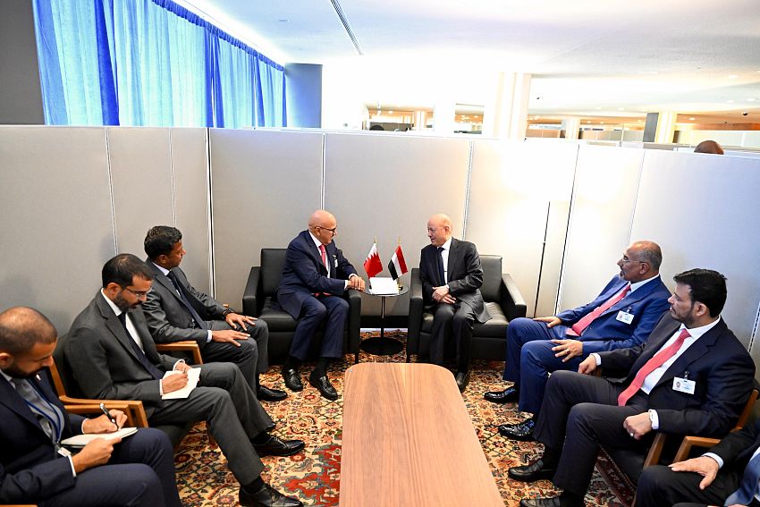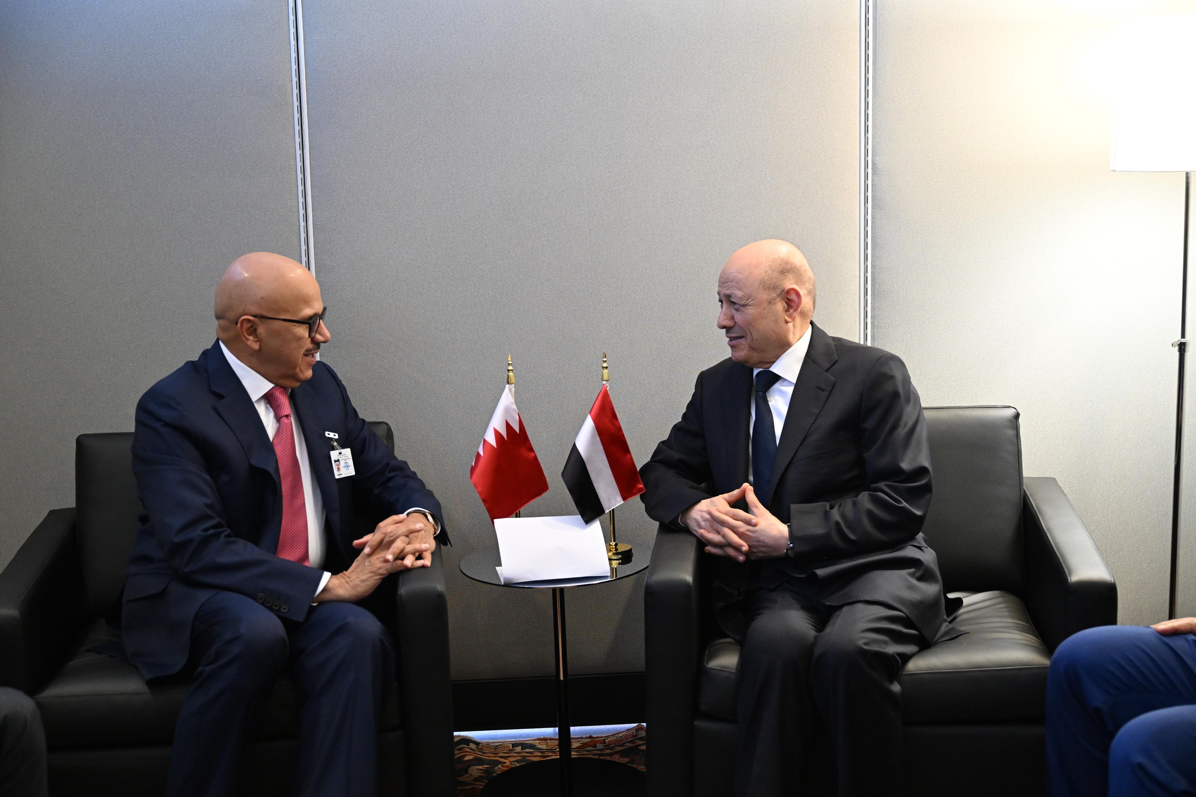 استقبل فخامة الرئيس الدكتور رشاد محمد العليمي، رئيس مجلس القيادة الرئاسي ومعه عضوا المجلس اللواء عيدروس الزبيدي، والدكتور عبدالله العليمي اليوم الاربعاء وزير خارجية مملكة البحرين، الدكتور عبداللطيف الزياني، وذلك على هامش أعمال الدورة الثمانين للجمعية العامة للأمم المتحدة في نيويورك.