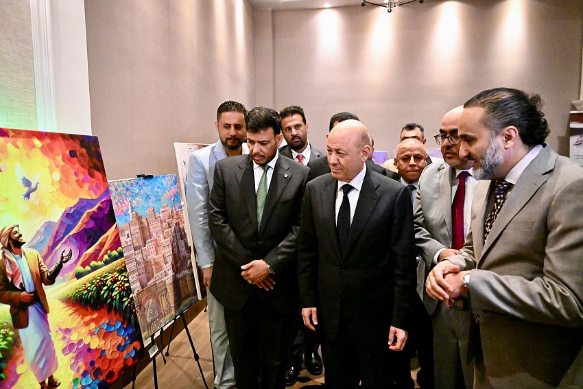 وتابع: "إن هذا المعرض بما يقدمه من تنوع في المدارس الفنية، من صنعاء وعدن وتعز وحضرموت وصعدة وإب والمهرة وسقطرى وغيرها من المحافظات، يعكس وحدة اليمنيين الثقافية والفنية، رغم محاولات المليشيات الحوثية الارهابية تمزيق النسيج الوطني".