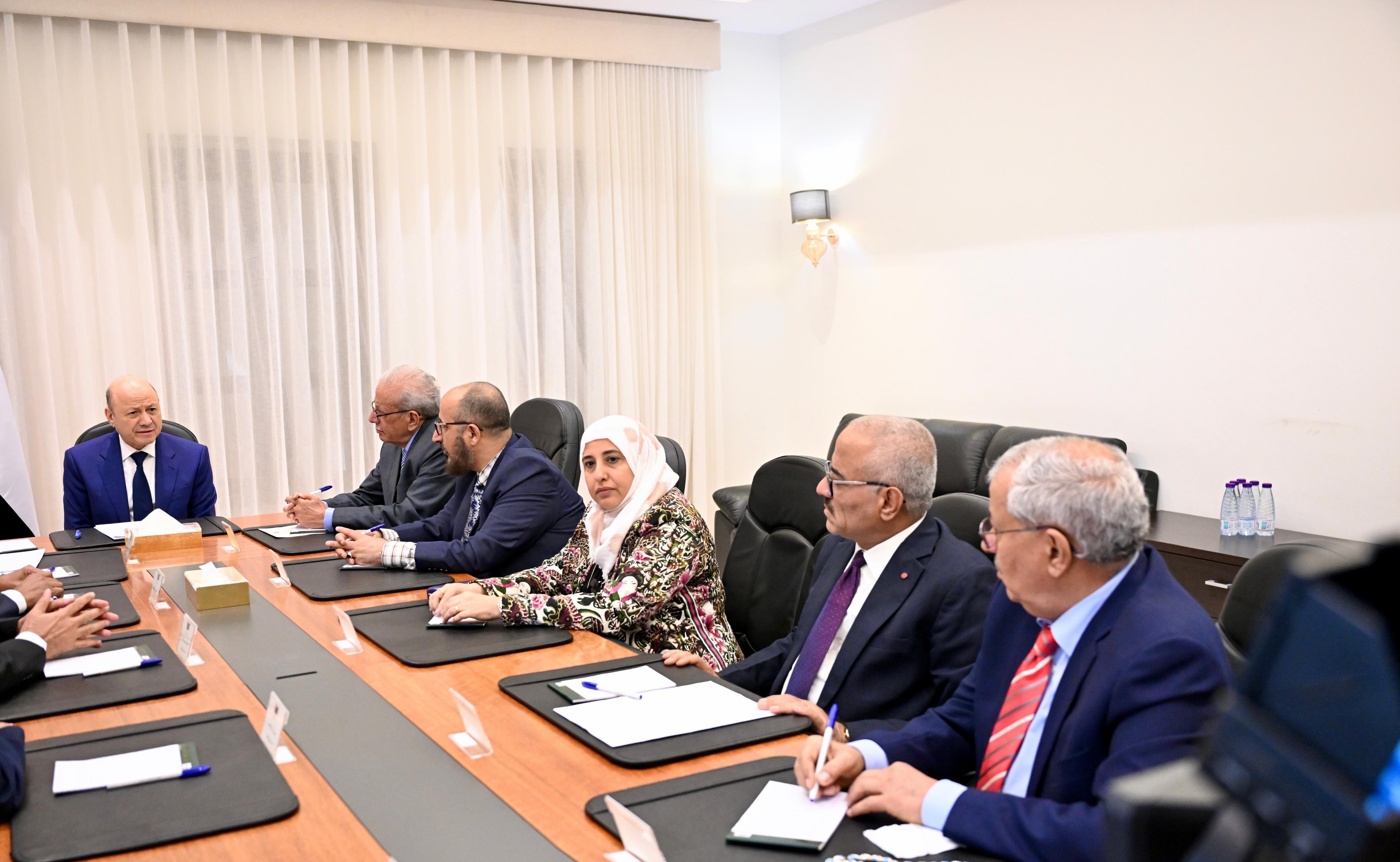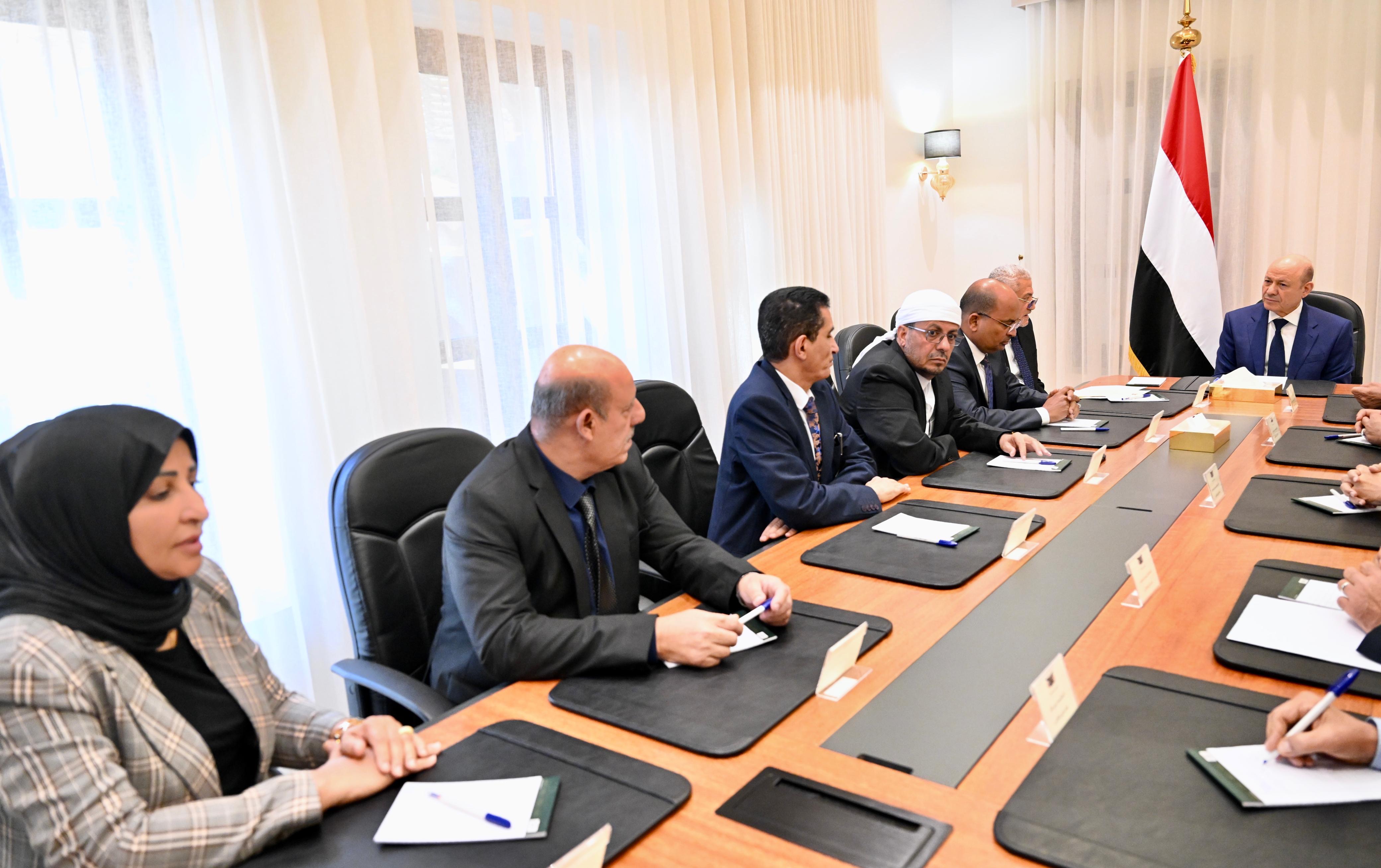 رئيس مجلس القيادة يؤكد من عدن أهمية التركيز على أولوية استعادة وبناء المؤسسات وتخفيف المعاناة