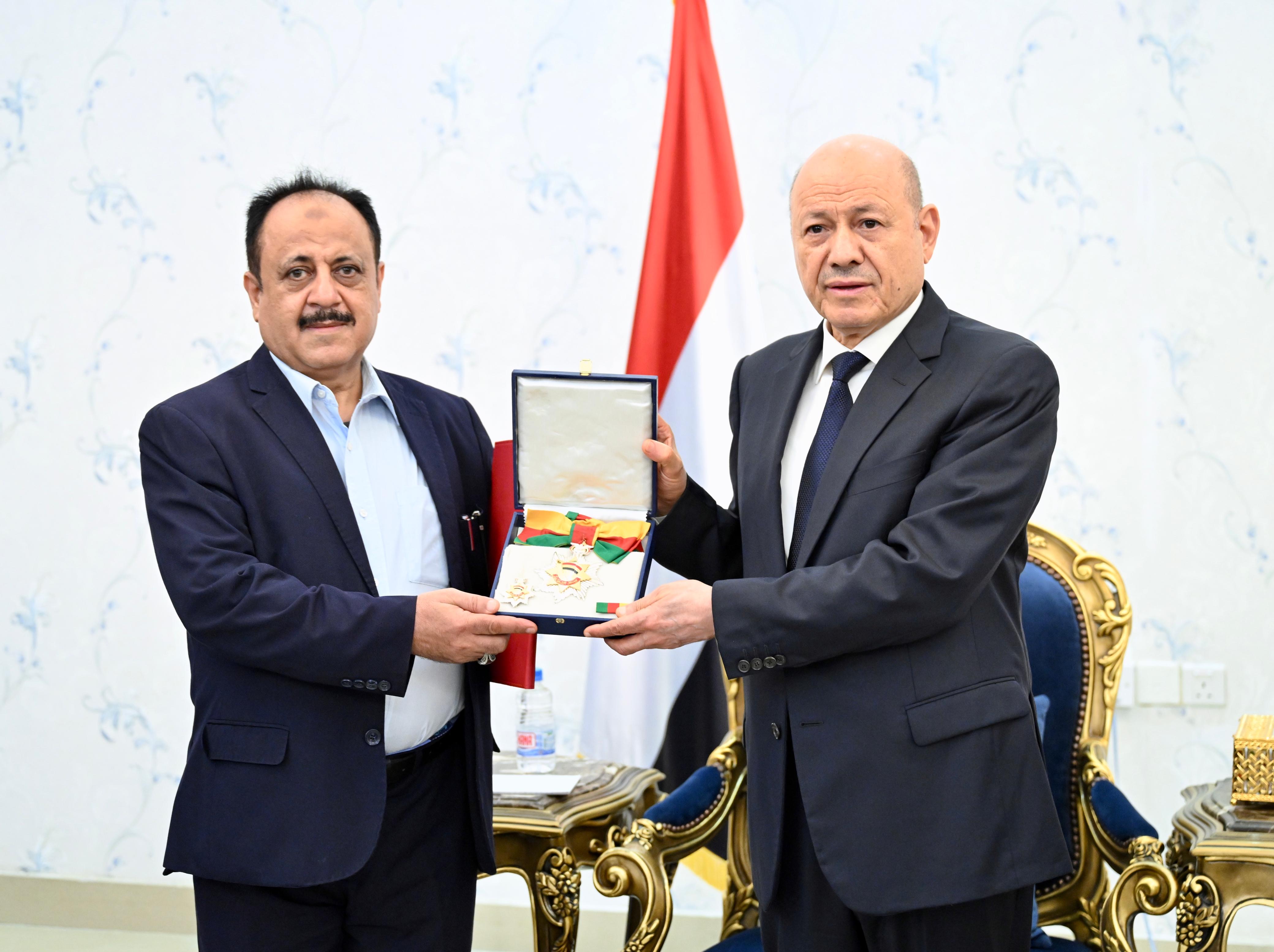 كرم فخامة الرئيس الدكتور رشاد محمد العليمي، رئيس مجلس القيادة الرئاسي، القائد الأعلى للقوات المسلحة، اليوم السبت، الفريق عبده محمد الحذيفي، والفريق احمد عبدالله المصعبي، بمنحهما وسامي الشجاعة اعتزازا وعرفانا بجهودهما، وخدماتهما الوطنية الجليلة خلال فترة توليهما قيادة الجهاز المركزي للأمن السياسي، وجهاز الامن القومي.