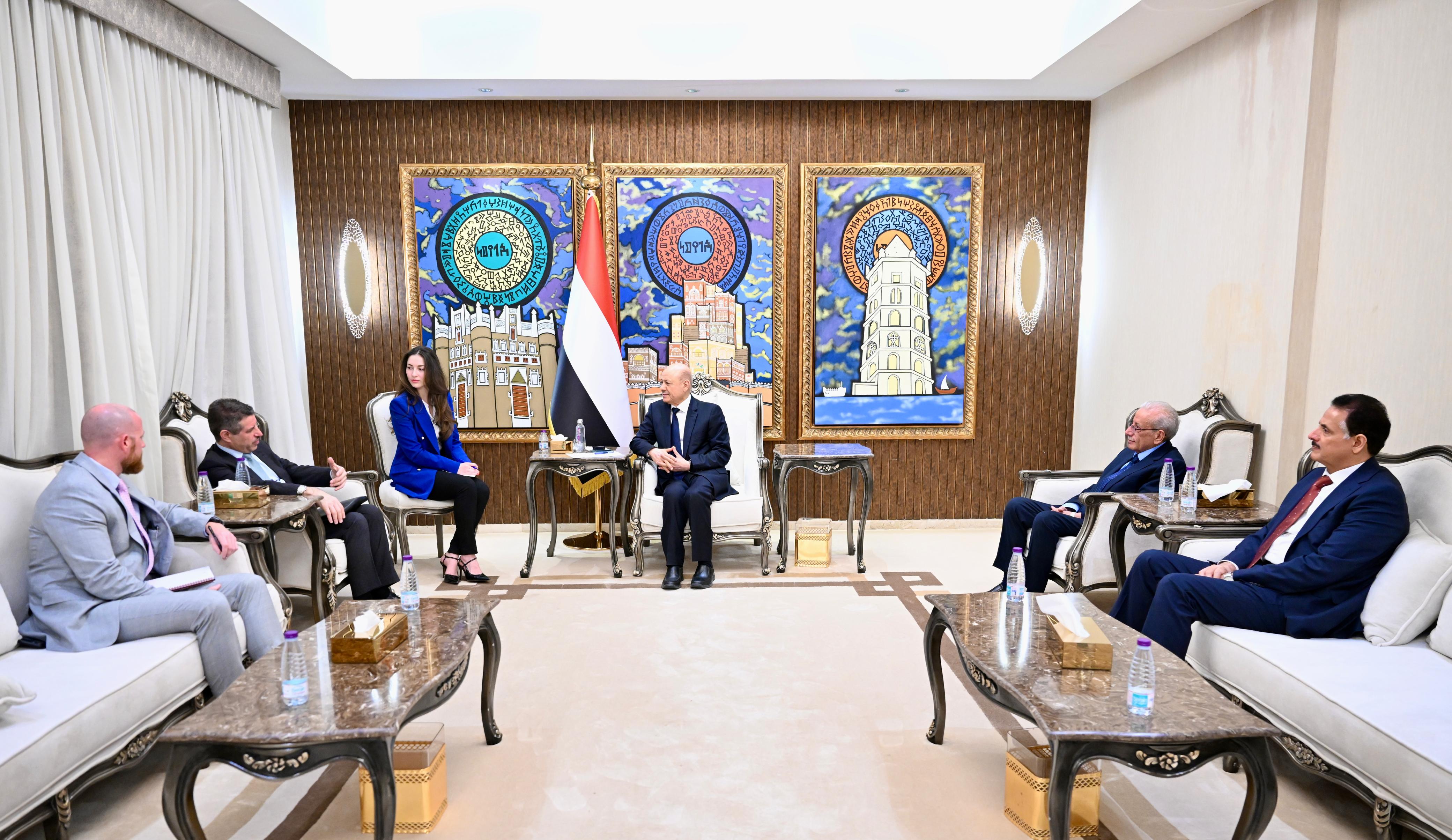 وفي اللقاء، اشاد رئيس مجلس القيادة بالتطور المشهود في العلاقات المتميزة بين البلدين، مثمنا الدعم الامريكي المستمر للشعب اليمني وقيادته السياسية، وفي المقدمة قرار تصنيف المليشيات الحوثية منظمة إرهابية اجنبية، والإجراءات اللاحقة ضد شبكات التمويل والتهريب المرتبطة بها.